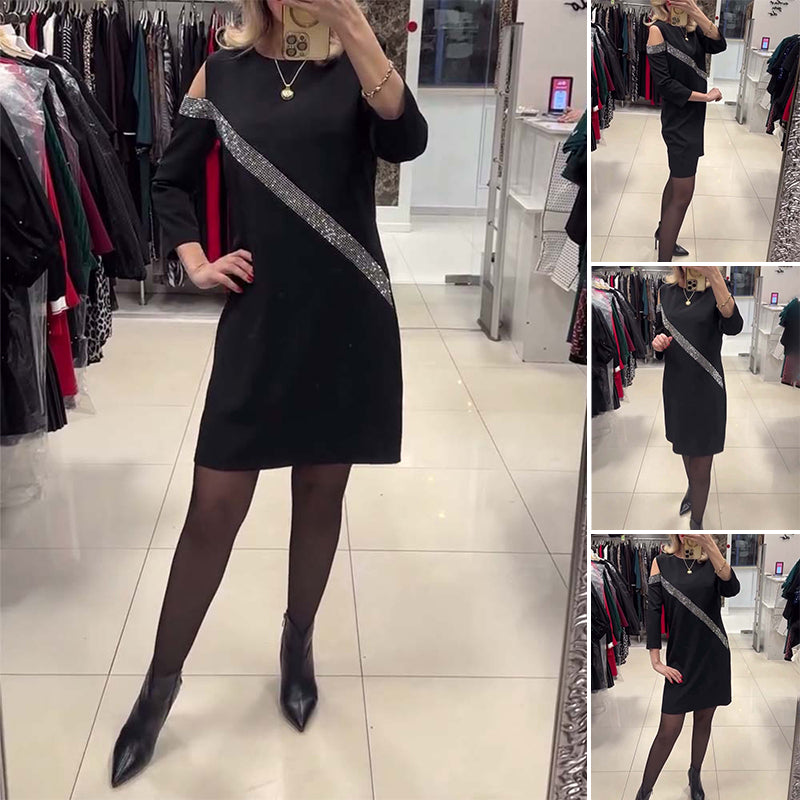PAKET: 1*Lässiges, modisches Paillettenkleid mit Rundhalsausschnitt