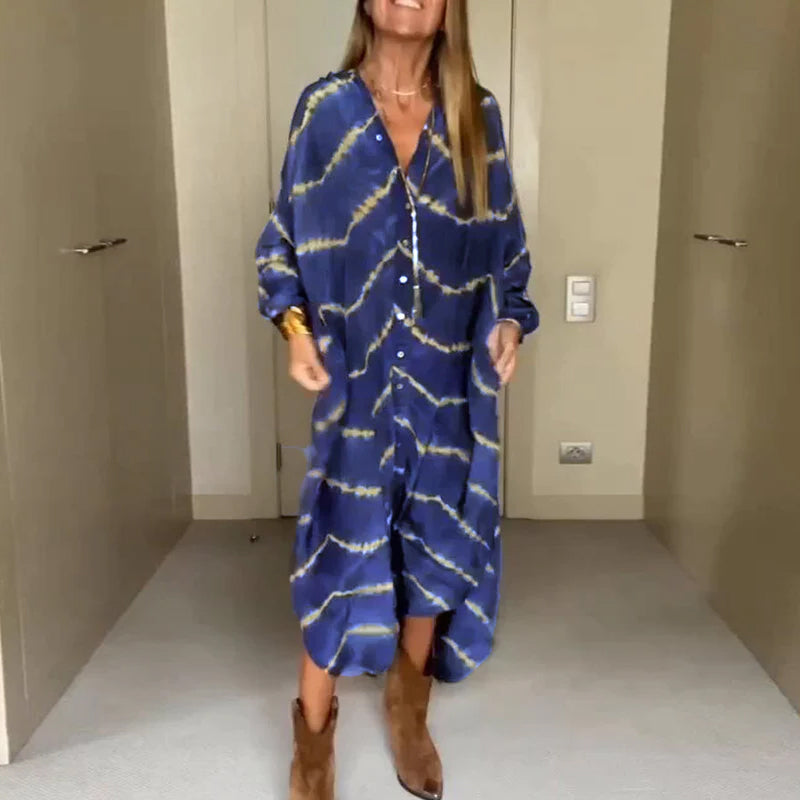 Passform: Lockere Passform, kurze Ärmel, V-Ausschnitt, lässiges Alltagskleid. Einfaches An- und Ausziehen.