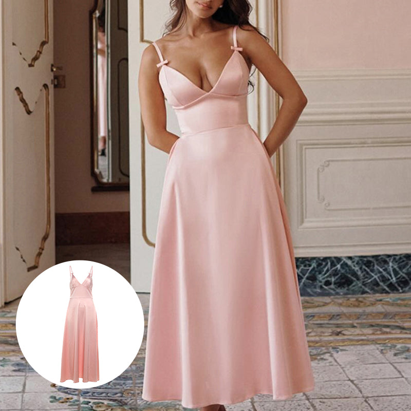 PAKET:1*Neckholderkleid aus Satin mit V-Ausschnitt
