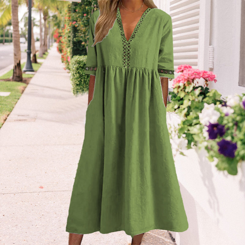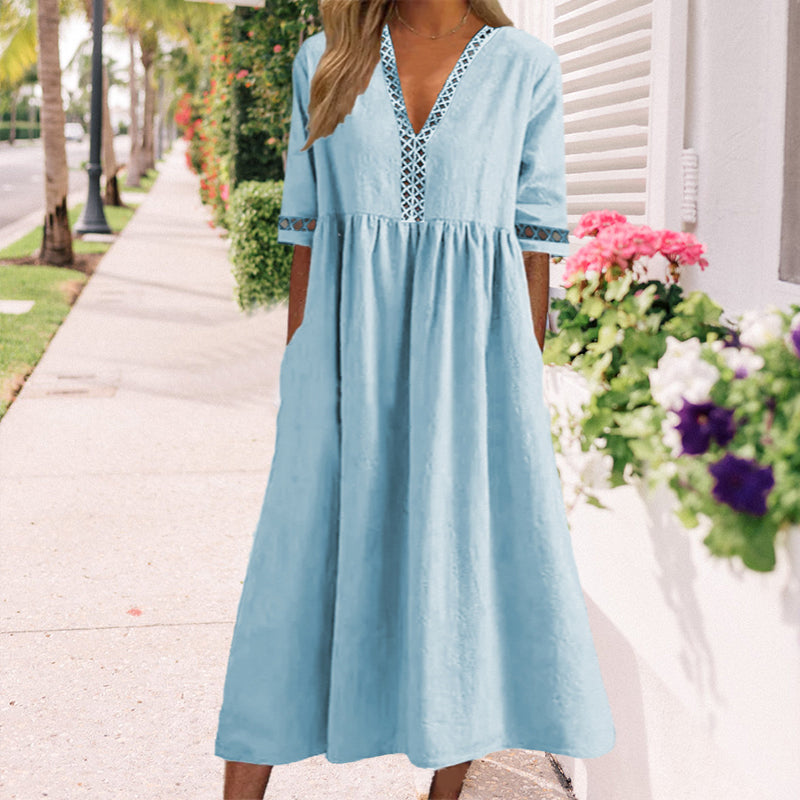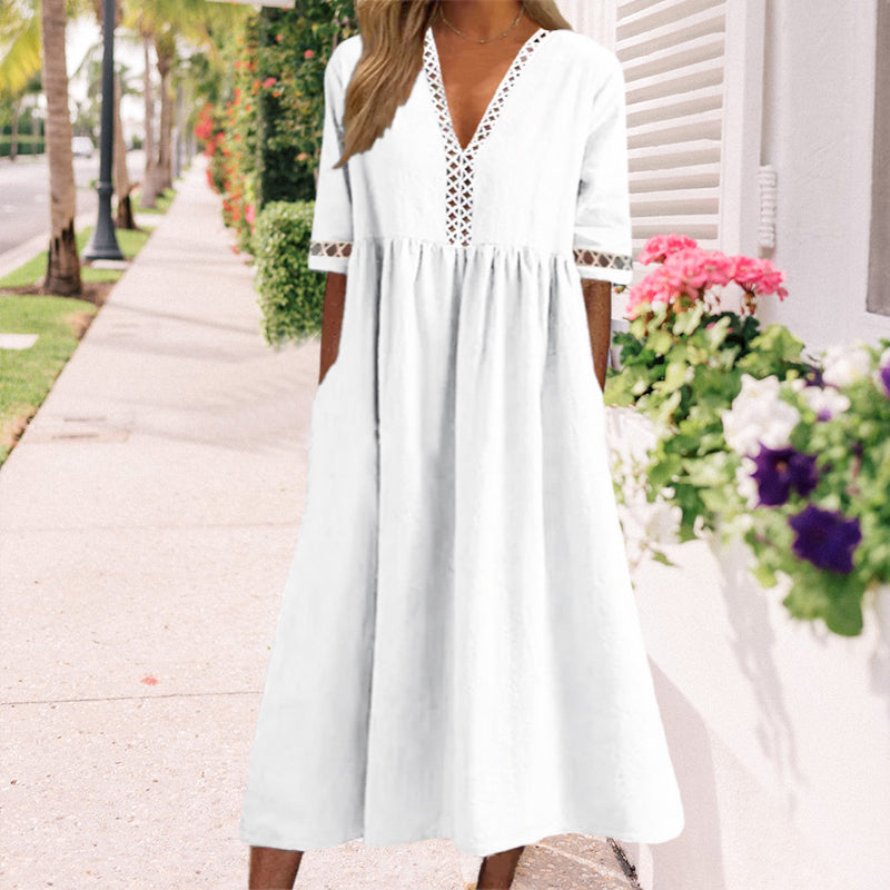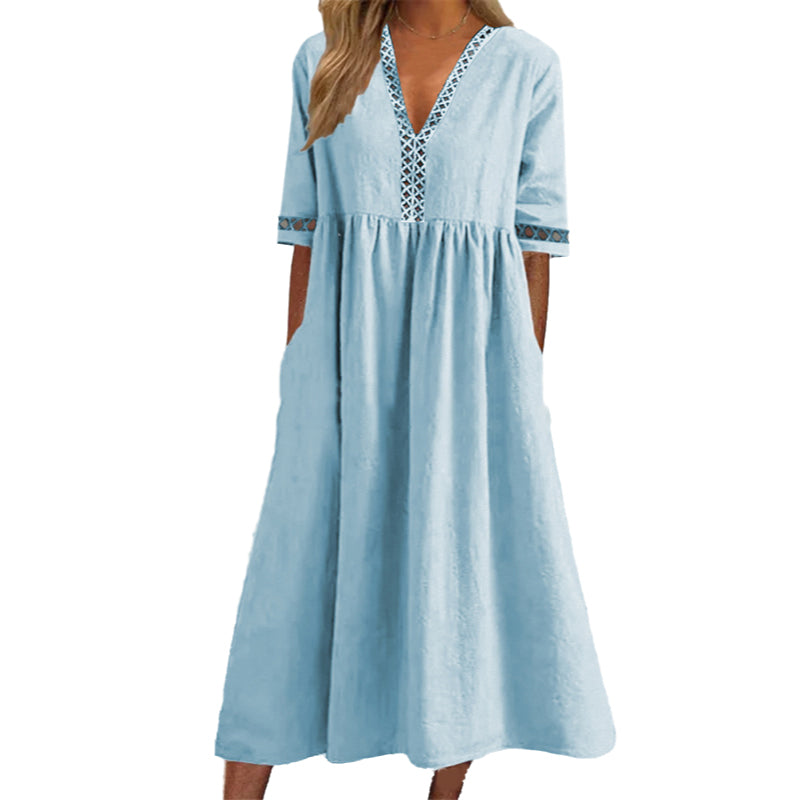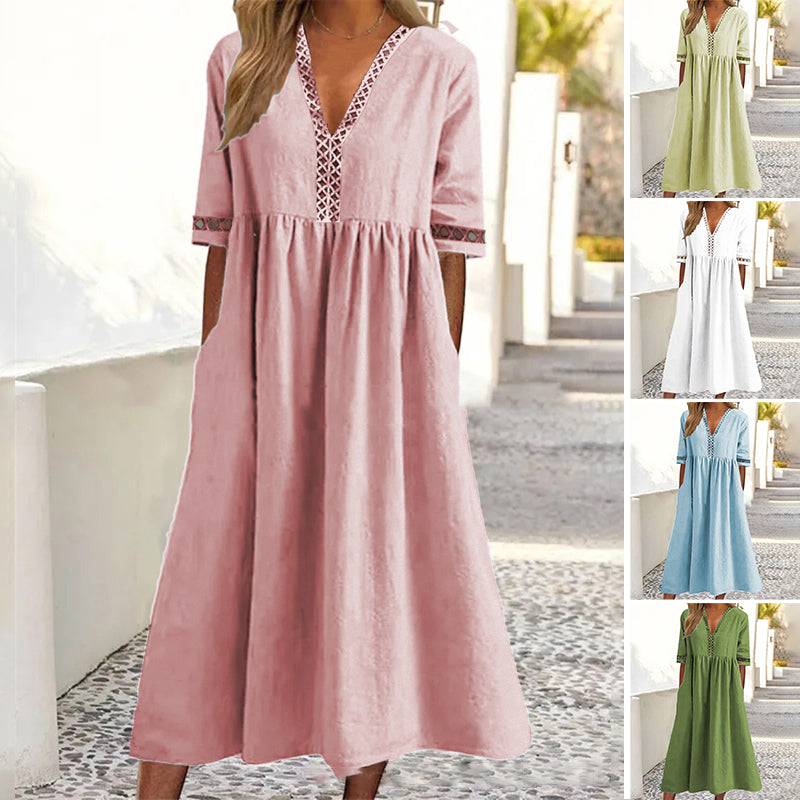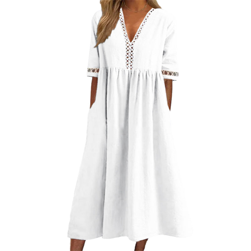 - Vielseitig: Lässt sich leicht mit High Heels oder flachen Sandalen für einen lässigen Alltagslook kombinieren. Das V-Ausschnitt-Design kann mit einer zarten Halskette kombiniert werden. Das lockere Kleid kann auch mit Stiefeln und einer stylischen Tasche kombiniert werden.