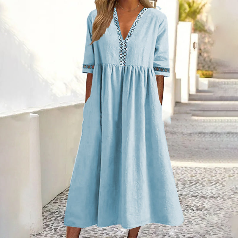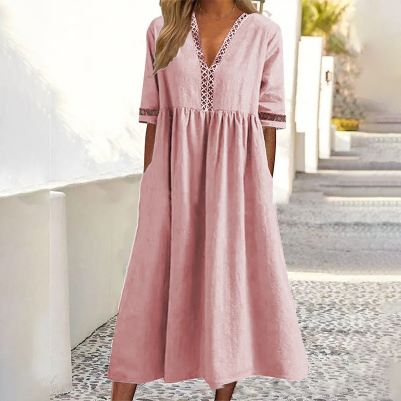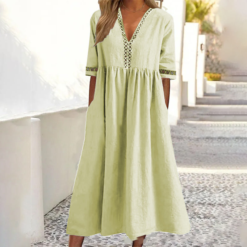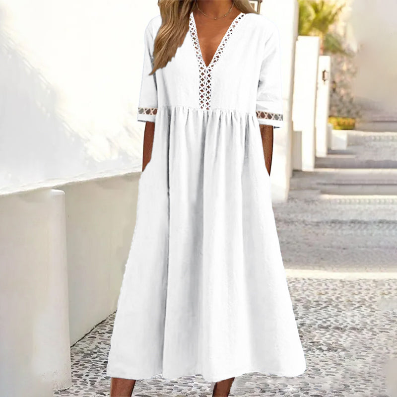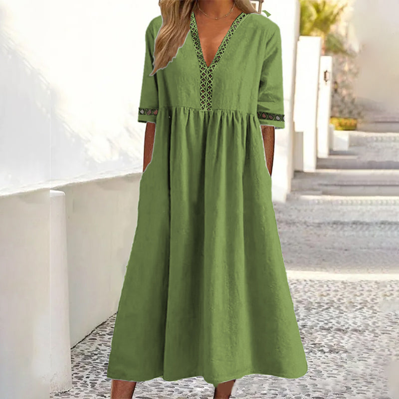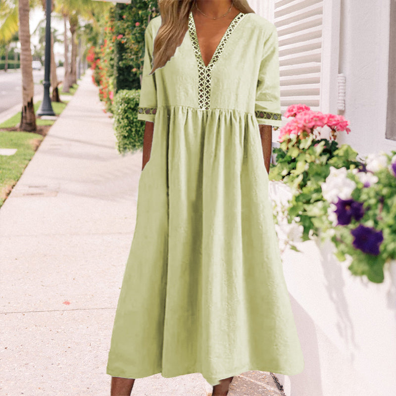- Vielseitig: Lässt sich leicht mit High Heels oder flachen Sandalen für einen lässigen Alltagslook kombinieren. Das V-Ausschnitt-Design kann mit einer zarten Halskette kombiniert werden. Das lockere Kleid kann auch mit Stiefeln und einer stylischen Tasche kombiniert werden.