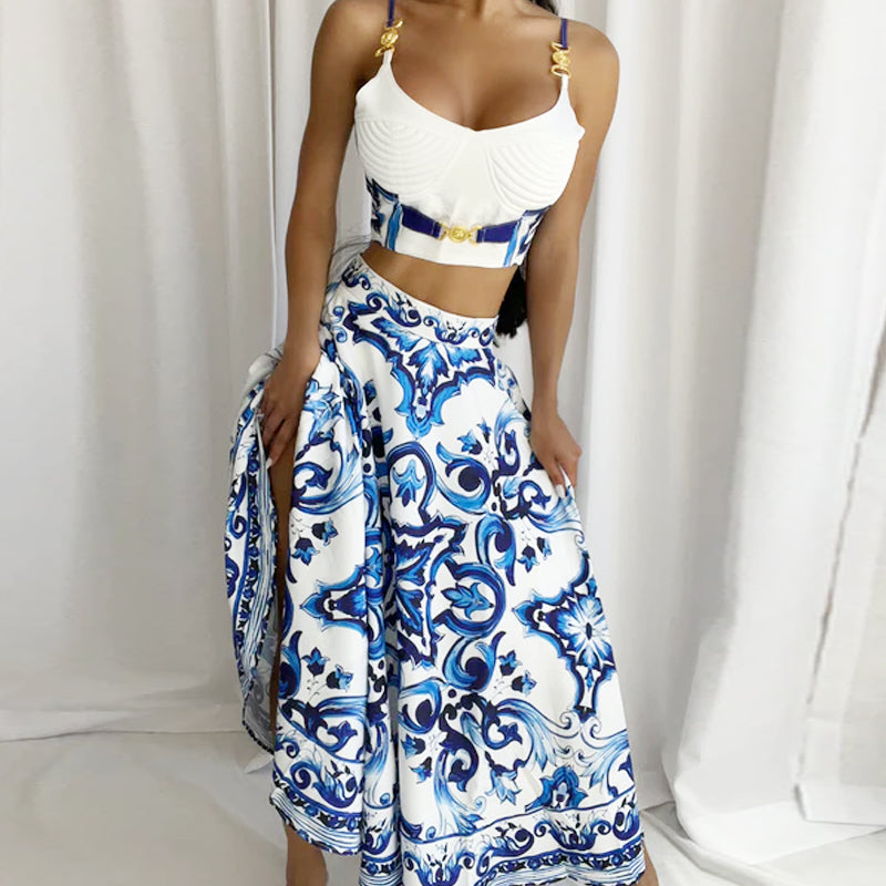 Merkmale: Blumendruck, Boho 2 Stück zwei Stück Outfits Kleid, Röhrenoberteil und hoch taillierte gegürtetes Maxikleid mit hohem Schlitz, sexy gedruckt Sommerkleid Strandkleid langes Kleid, Off-Shoulder-Maxikleid