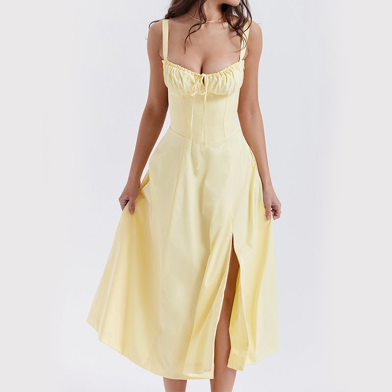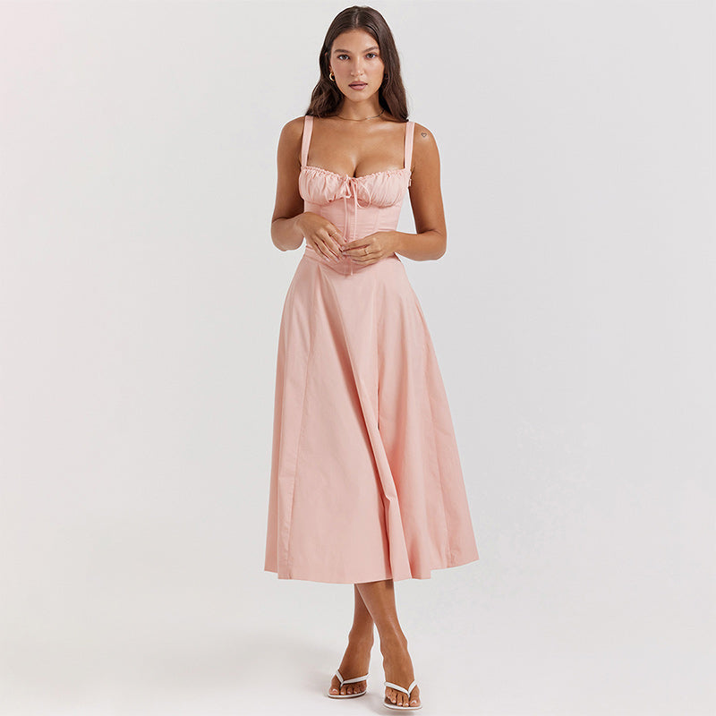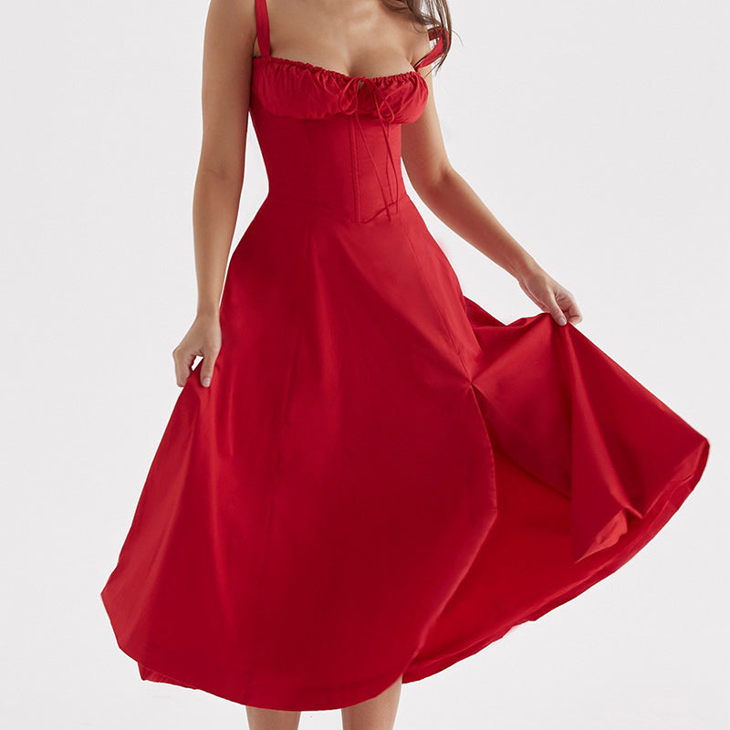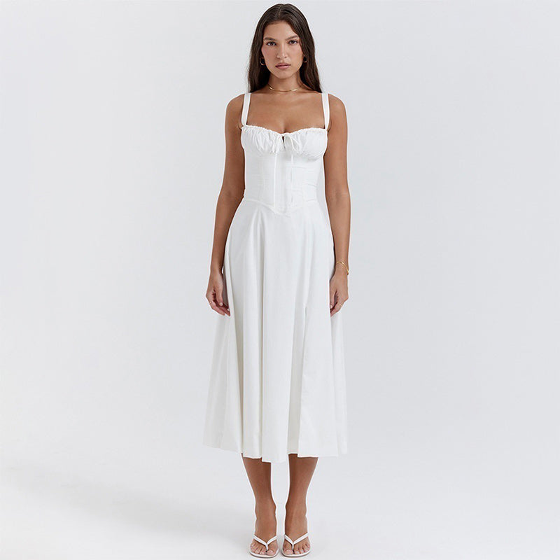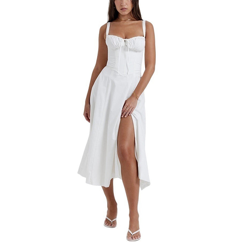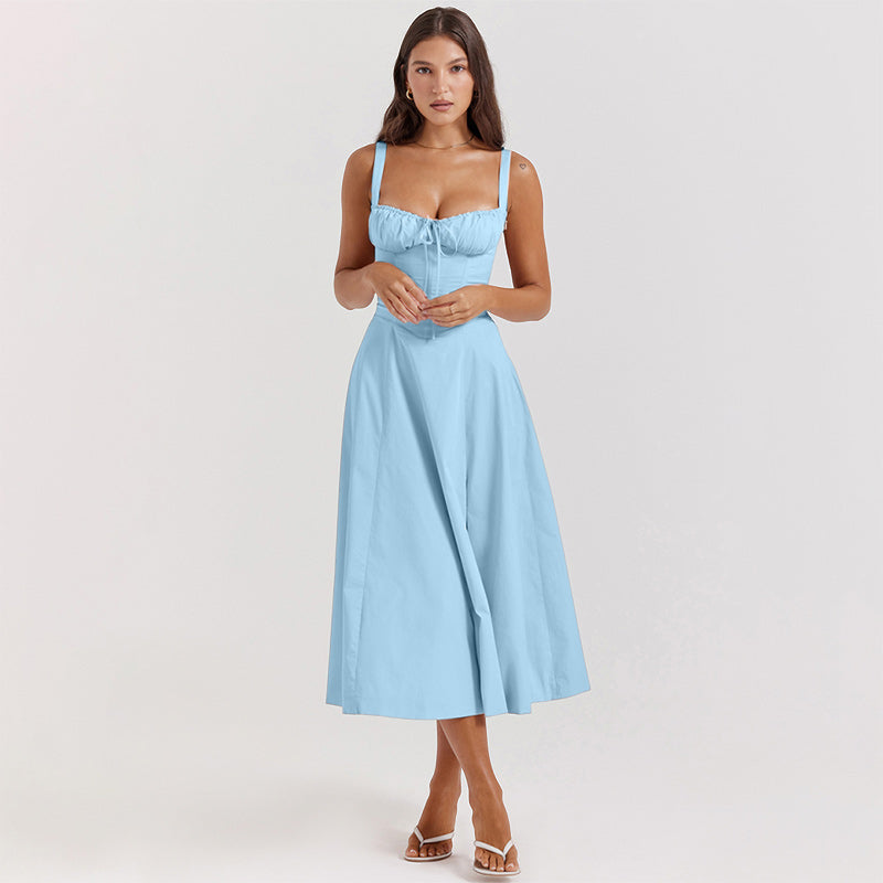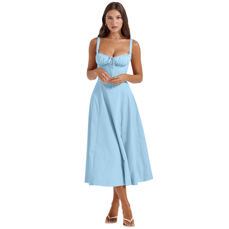 - Tief ausgeschnittenes Rückendesign: Der tiefe Rückenausschnitt des Trägerkleides verleiht Ihrem Look einen Hauch von Eleganz und Reiz und setzt Ihren Rücken und Ihre Schultern perfekt in Szene.