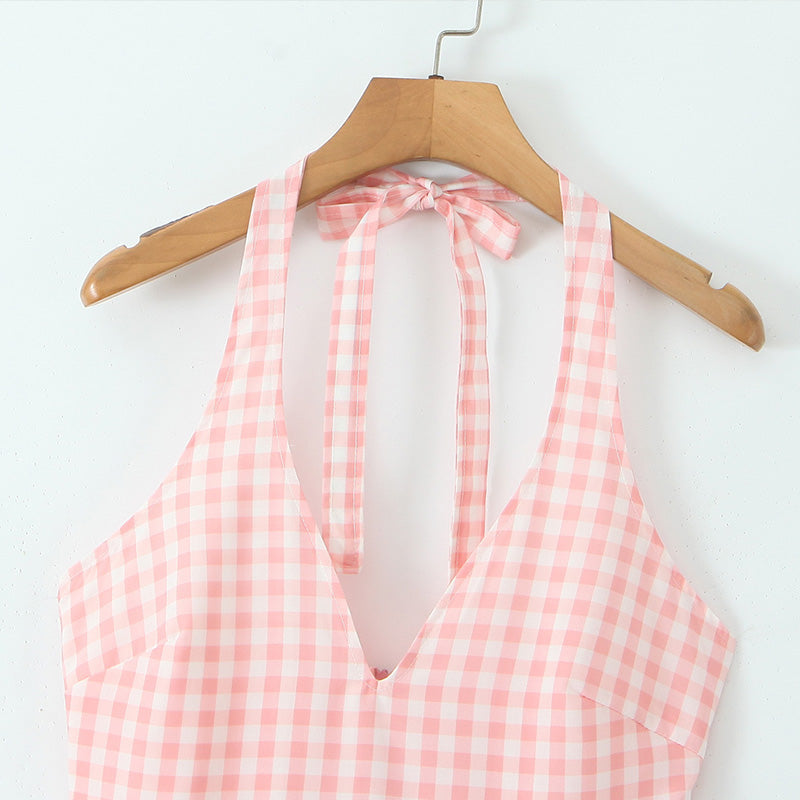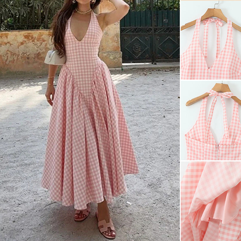 Paket: 1 * Kariertes Kleid mit V-Ausschnitt und Riemchenausschnitt