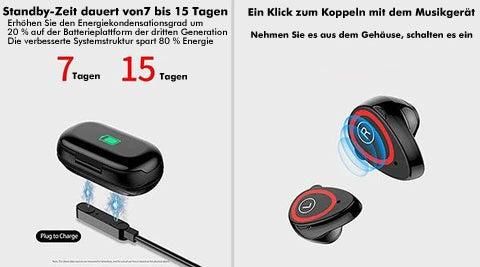 Ein Klick zum Koppeln mit dem Musikgerät, nehmen Sie es aus dem Gehäuse, schalten es ein