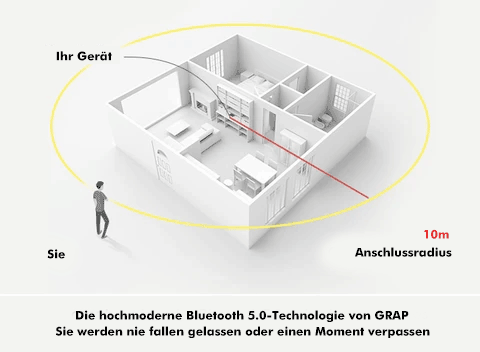 Der Akku des Geräts kann bis zu 7 Tage halten und die Kommunikationsentfernung beträgt innerhalb von 10 Metern