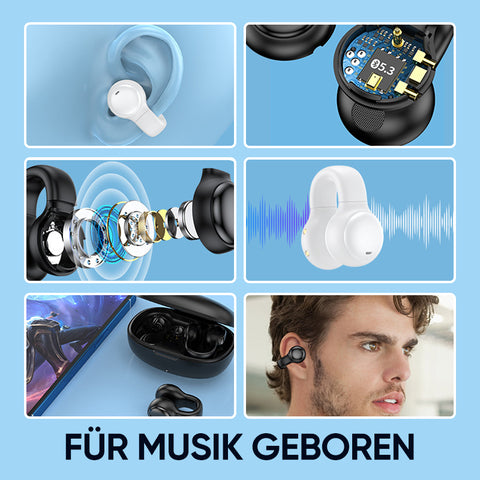 • [Ohrenschmerzfreies Design] Clip-Ohrhörer haben ein ergonomisches und komfortables Design. Das innovative Ohrclip-Design der Knochenleitungskopfhörer mit Ohrclip ist schmerzfrei. Die Ohrhörer sind mit Ohrclips ausgestattet, innovativ, gesund und bequem, geeignet für jede Ohrgröße ohne Schmerzen.