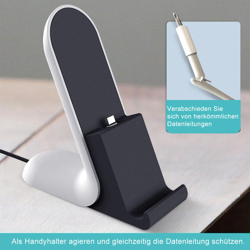 Unser Produkt unterstützt das Aufladen von Mobiltelefonen mit einer Hülle, sodass Sie sich keine Sorgen machen müssen, das Telefon einzuklemmen. Er kann nicht nur als Handyhalter, sondern auch als Tablethalter verwendet werden. Während des Ladevorgangs können Sie Ihre Hände freigeben und Filme ansehen.