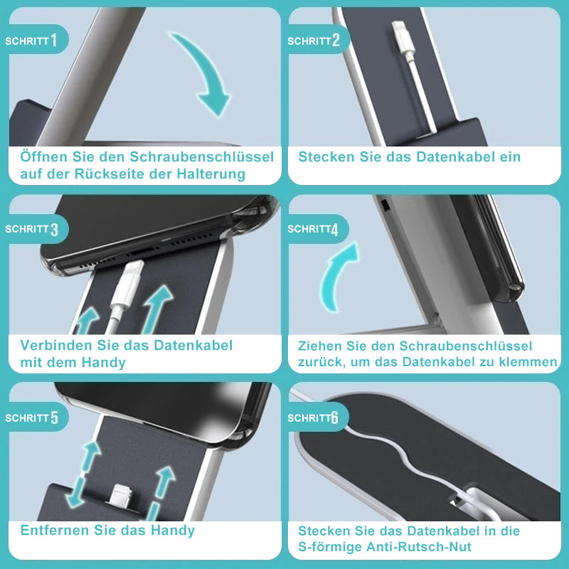 Mit unseren Produkten können Sie schneller aufladen, Geld sparen und bequem und schnell mit einer Hand bedienen. Verabschieden Sie sich vom unordentlichen Desktop und schützen Sie Ihr Datenkabel, damit Sie leichter Videos ansehen und Informationen erhalten.