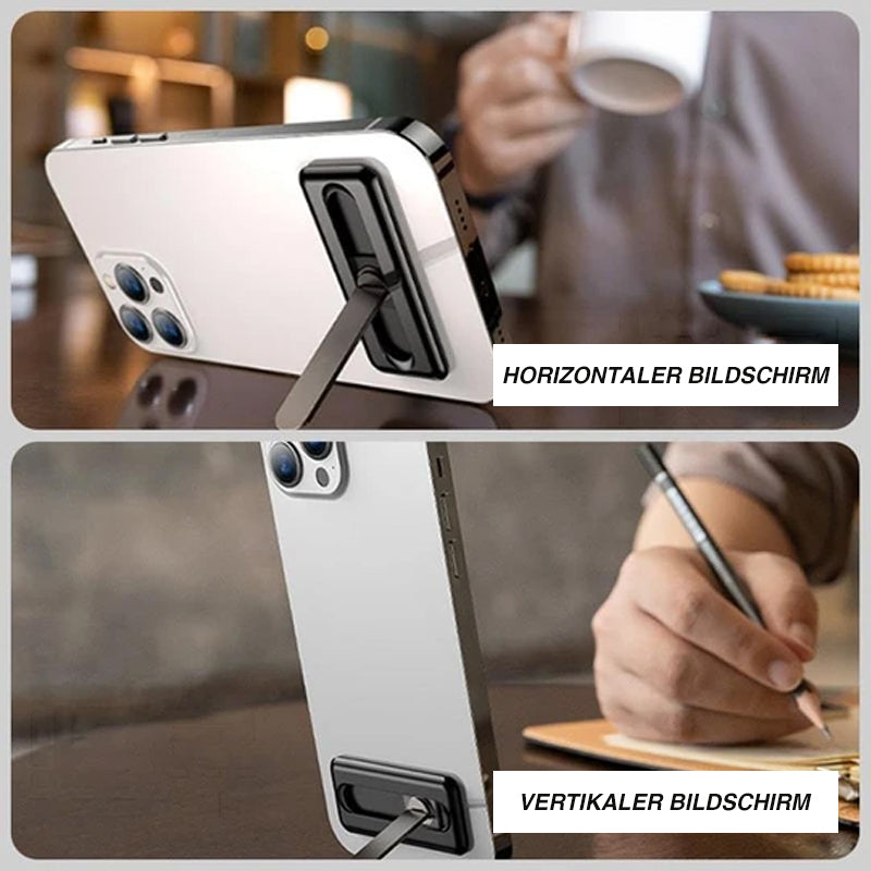 Im Vergleich zu anderen Ringhalterungen ist sie länger und um 360° drehbar, sodass das Telefon horizontal und vertikal aufgestellt werden kann.