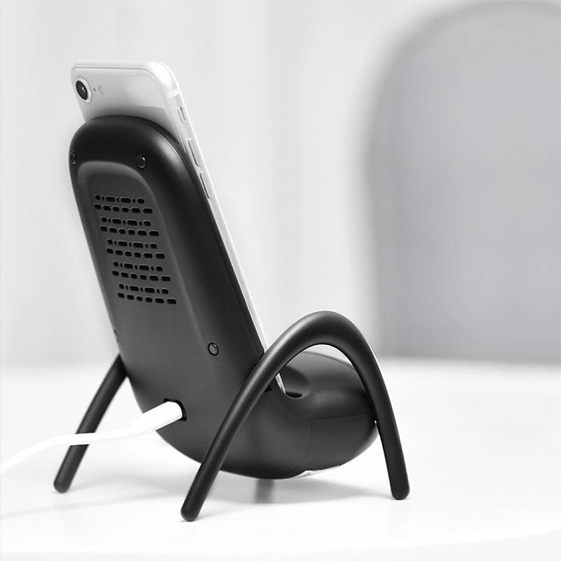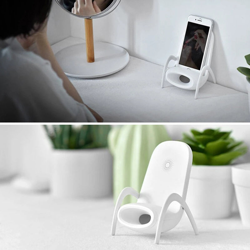 Kreative Stuhlform, einzigartig und neuartig, Sie können die horizontale oder vertikale Position für die drahtlose Lade- / Telefonstandfunktion wählen.