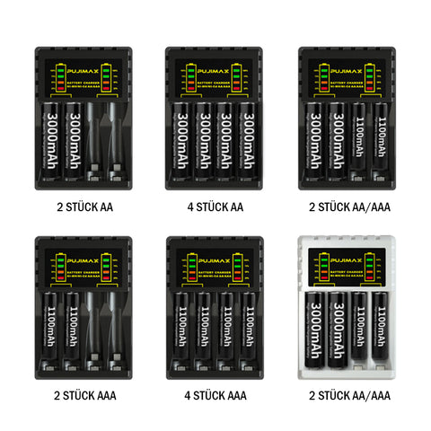 • Schnellladung: Es dauert nur 4 Stunden, bis 4 AA-Batterien vollständig aufgeladen sind, und etwa 3 Stunden für 4 AA-Batterien. Erzielen Sie schnelles Aufladen und sparen Sie Zeit.