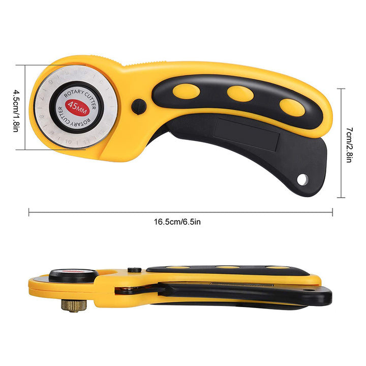 💡 Einfach – dieser 45-mm-Rollschneider ist einfach zu bedienen. Der rutschfeste Griff ist ergonomisch gestaltet, um die Ermüdung der Gelenke zu reduzieren. Mit dem Sicherheitsknopf können Sie die Klingen auch ganz einfach austauschen.