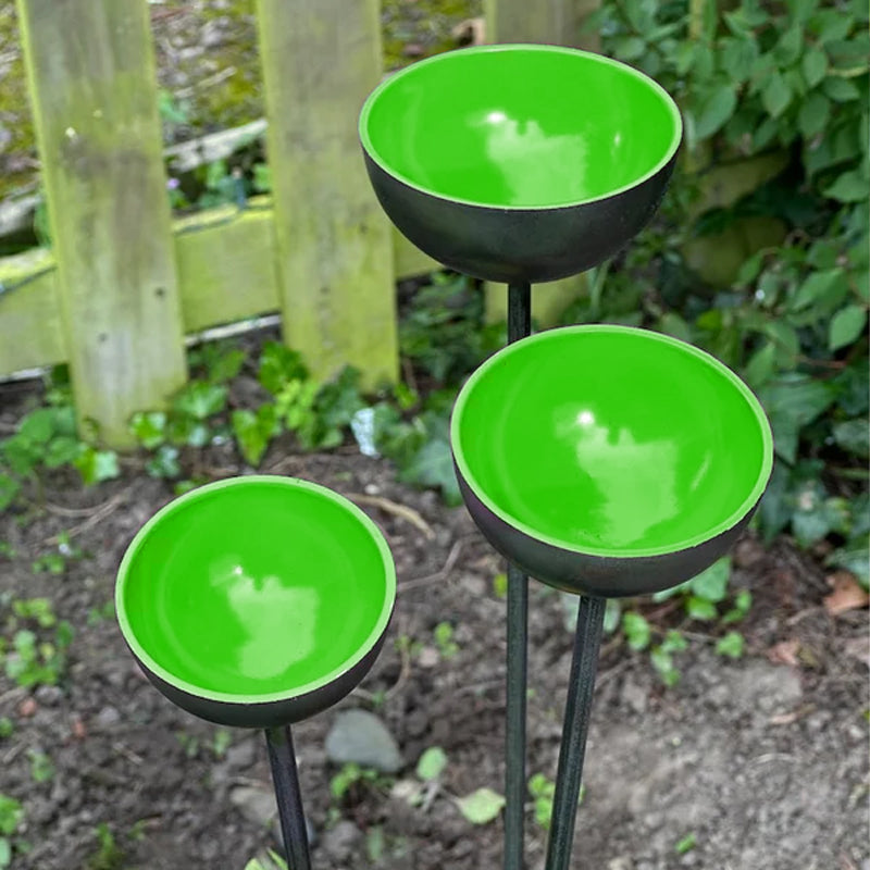 Füllen Sie sie mit Kieselsteinen, damit sie sich sicher tränken können. Fügen Sie Samen oder Früchte hinzu und beobachten Sie, wie die Vögel in den Garten strömen. Ein schöner Farbtupfer selbst an den trübsten Tagen und ein neuer Blickpunkt im Garten.