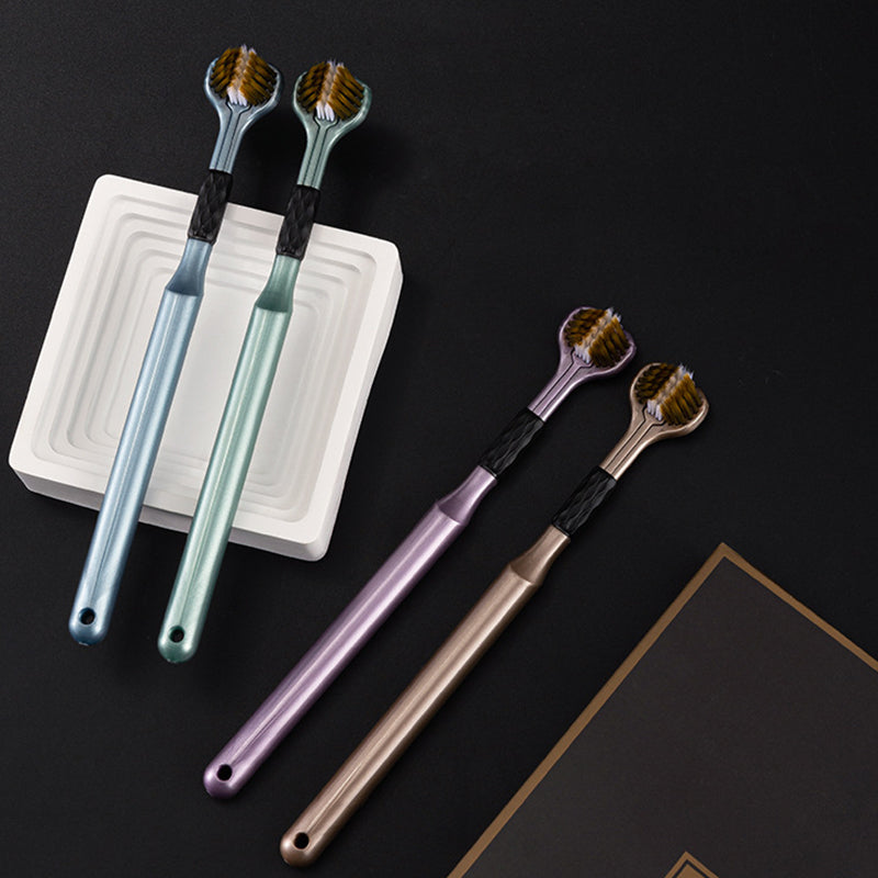 ⭐【Umfassende Reinigung】: Unsere 3-seitige Zahnbürste mit einzigartigem Drei-Kopf-Design sorgt für eine tiefe und gründliche Reinigung, die keine toten Ecken unberührt lässt. Die weichen 360-Grad-Borsten umschließen jeden Zahn in alle Richtungen und sorgen für ein innovatives Putzerlebnis.