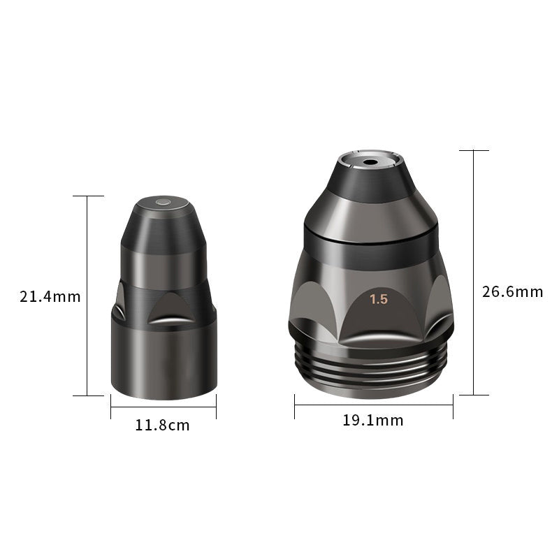 Das Wärmeableitungsdesign kann die Temperatur der Düse während des Schneidens effektiv reduzieren. Das kürbisförmige Düsendesign sorgt für eine bessere Gaskühlung und hohe Temperaturbeständigkeit sowie eine konzentriertere Feuerkraftabgabe. Verdickter, langlebiger, haltbarer Elektrodenkern für schnelle, enge Schnitte.
