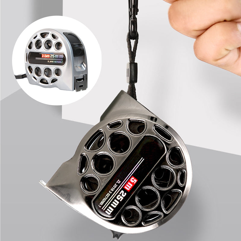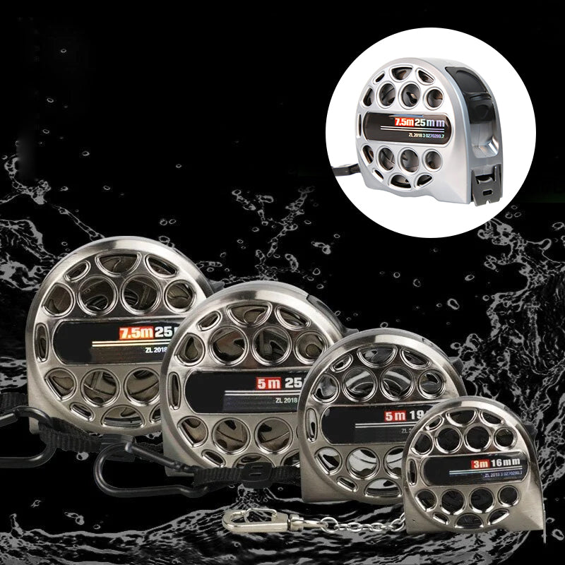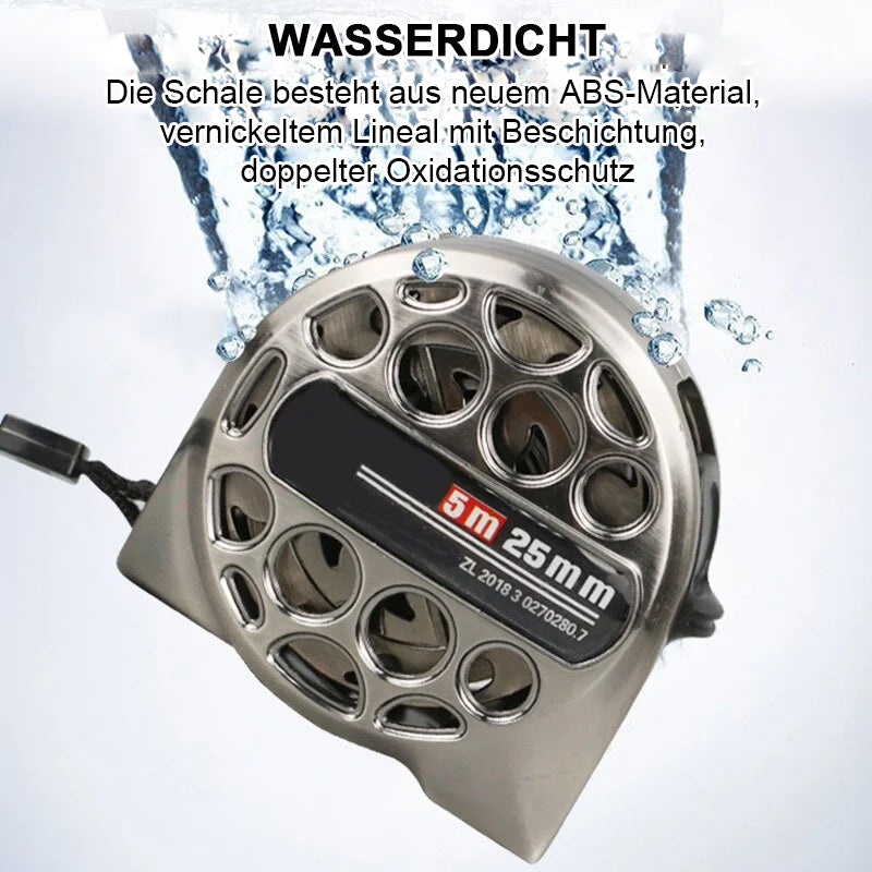 Edelstahlteile: Edelstahlteile machen das Maßband stark, rostfrei und langlebiger. Wie Klinge aus rostfreiem Stahl, Feder aus rostfreiem Stahl. Die gesamte Ausstattung ist schlagfest und rostfrei.