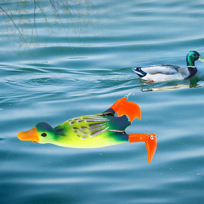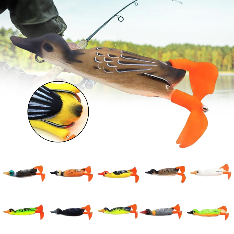 • Ein künstlicher Oberflächenköder, der auf der Wasseroberfläche schwimmende Wildenten simuliert.