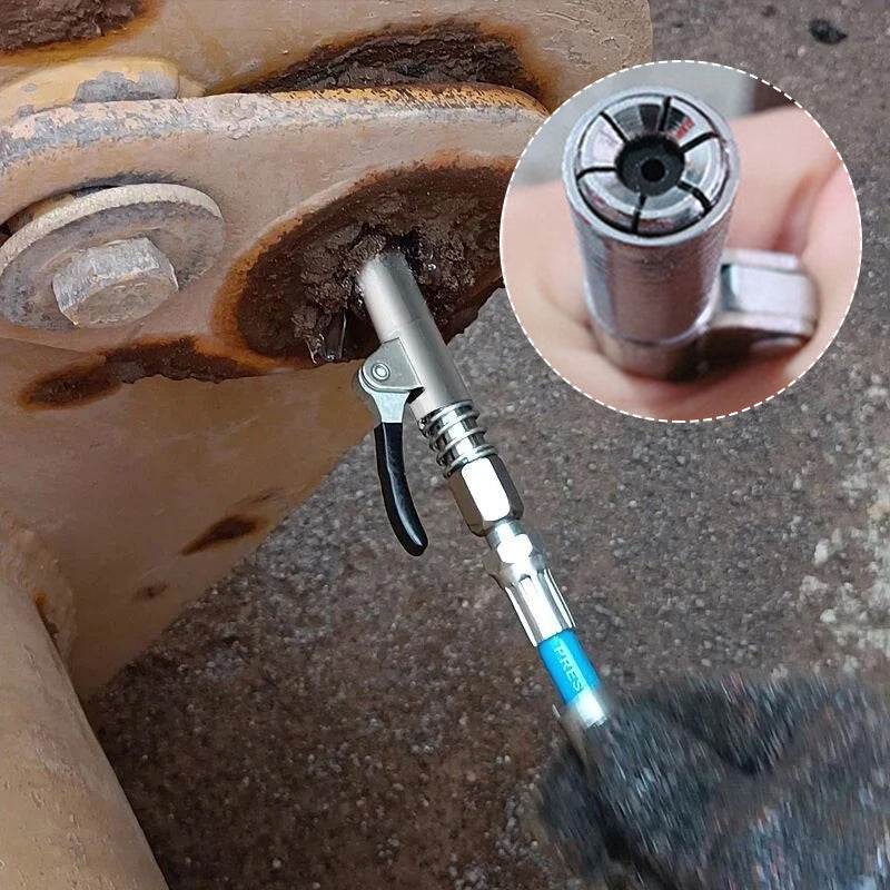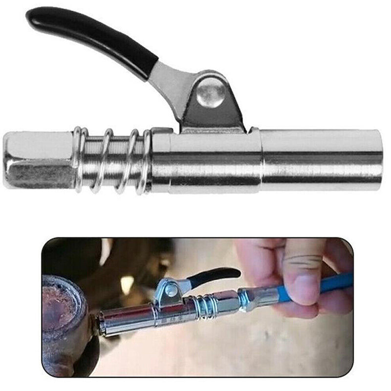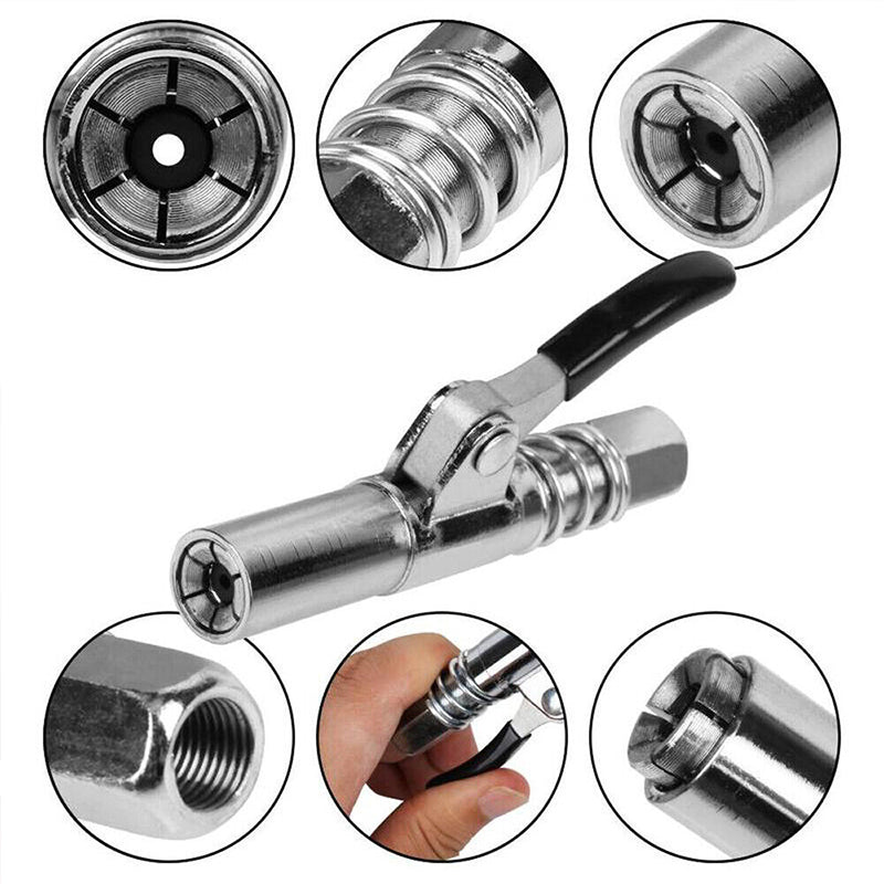 Kleine Größe: Diese Fettkupplung ist an engen Stellen einfach zu verwenden. Ein flexibler Rückzugsmechanismus ermöglicht eine einzige Operation. Sobald der Schmiernippel auf der Armatur verriegelt ist, bleibt er offen und gibt die Hände frei, um das Schmierwerkzeug zu verwenden.