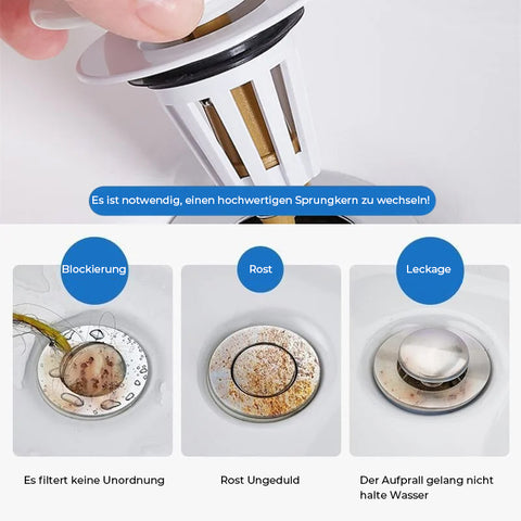 • ✔Eingebautes Sieb: Im Gegensatz zu gewöhnlichen Abflüssen mit Druckknopf verfügt diese Abflussschraube über einen integrierten Anti-Verstopfungs-Korbfilter, der Haare sauber sammelt und verhindert, dass der Abfluss verstopft wird. Gegenstände wie Schmuck, Ringe, Schmutz usw.