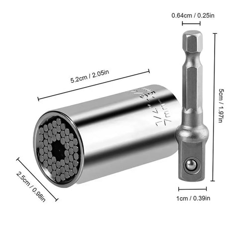 Einzigartiges Design: Mit superstarken Stahlstäben, die einzeln federbetätigt sind, so dass die Buchse automatisch an jede Form sofort anpassen, bewegen, um verschiedene Arten von Verbindungselementen ohne jede Änderung Steckdosen.Dieser Adapter Feder-Kugel-Verschluss sorgt für einen festen Sitz in den Treiber Kopf, um ein Abrutschen während des Gebrauchs zu verhindern. Speziell angefertigt, um sicher in einen Handschrauber, Bohrschrauber oder Schlagschrauber zu passen.