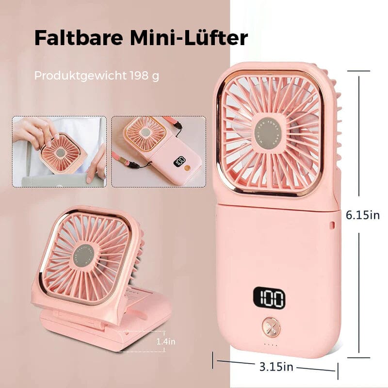 • Klein und faltbar - Dieser tragbare kleine persönliche Ventilator ist faltbar und lässt sich um 180 Grad auf dem Tisch falten. Nach dem Zusammenklappen können Sie es einfach in Ihre Tasche, Ihren Rucksack usw. stecken. Kann als Handventilator, Mini-Tischventilator oder Taschenventilator verwendet werden. Perfekt für den Einsatz zu Hause, im Schlafzimmer, im Büro, in der Schule, auf dem Schreibtisch, beim Camping oder auf Reisen.