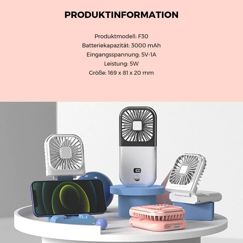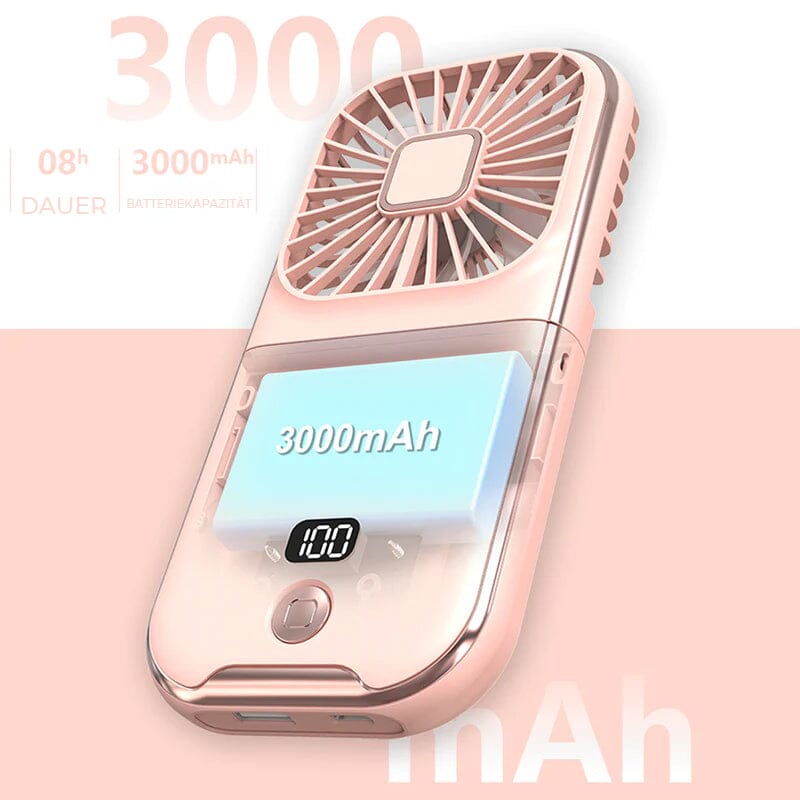 • Powerbank-Funktion - 3000mAh wiederaufladbarer batteriebetriebener Lüfter, Typ-C-Ausgangsport. Es ist nicht nur ein Mini-Handventilator, sondern eine praktische Powerbank, die im Notfall Telefone aufladen kann.