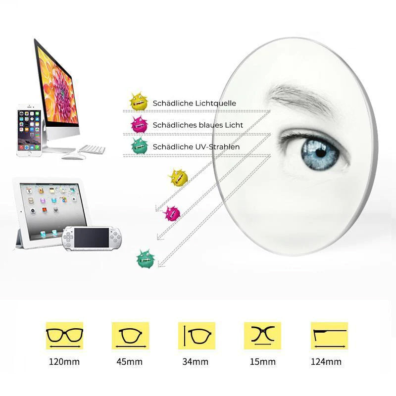 Die Exposition gegenüber schädlichem blauem Licht kann das Sehvermögen beeinträchtigen. Tragen Sie unsere Brille für Kinder, um das Sehvermögen von Kindern zu schützen und visuelle Ermüdung zu beseitigen.