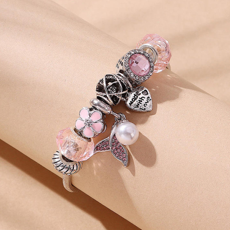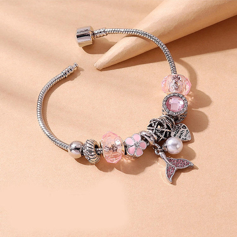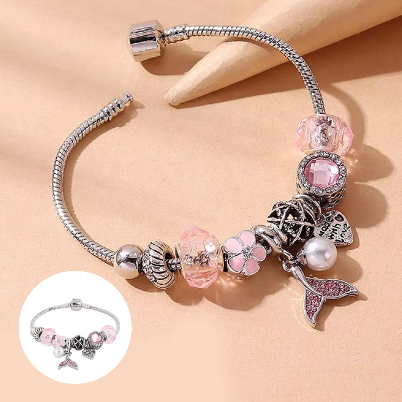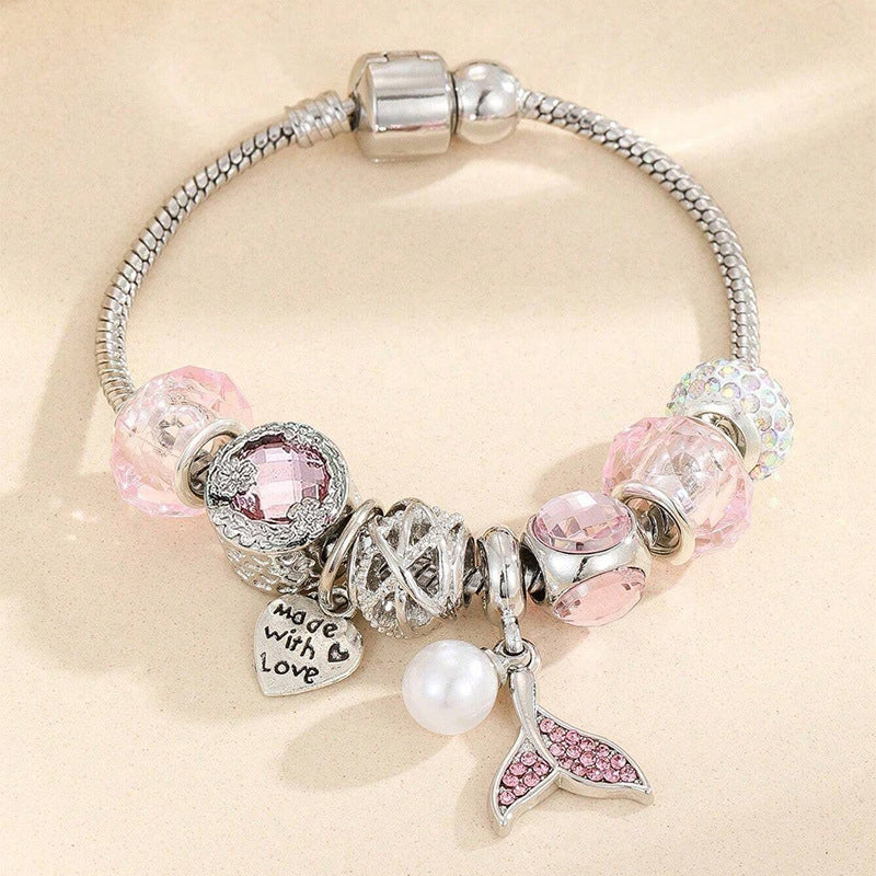 Einzigartiges Design: Das Armband kombiniert elegante Perlen mit einer verspielten Meerjungfrauenflosse, die einen fantasievollen, maritimen Look verleiht.