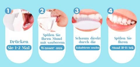 • Tragen Sie einfach einen Klecks Schaum auf Ihre Zahnbürste auf und putzen Sie Ihre Zähne so, wie Sie es immer tun.