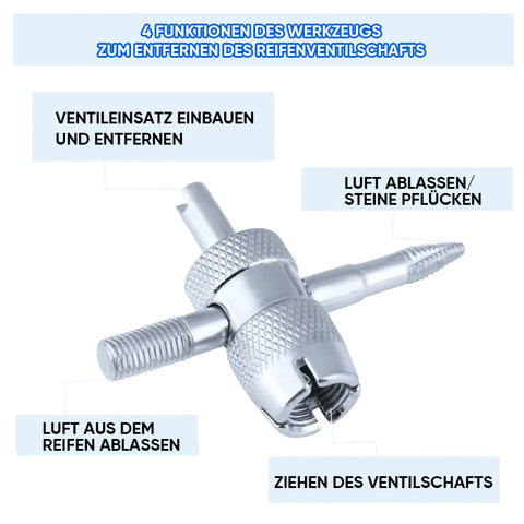 ✅ 4-Wege-Reifenschraubendreher für Auto, Fahrrad, LKW, Ventil, Reifenreparaturwerkzeug, Reifenschaftkernentferner, Installation.