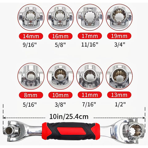 【48 IN1 WERKZEUG】Das einzigartige revolutionäre Zahndesign ermöglicht es Ihnen, sowohl Standard- als auch metrische Größen zu bearbeiten - drehen Sie einfach das Werkzeug um und Sie haben mehr Größen! Kein Herumschleppen von schweren Werkzeugkästen mehr.