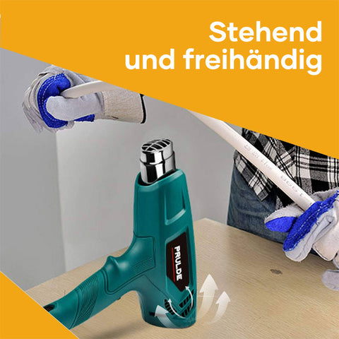【Rutschfestes Griffdesign】Unsere Griffe sind so konzipiert, dass Ihre Arbeit komfortabler wird. Und die Heißluftpistole kann auch alleine verwendet werden, sodass Sie Ihre Hände frei haben und sich mehr auf das Werkstück konzentrieren können, egal ob es sich um eine Schrumpfverbindung oder ein PVC-Rohr handelt.