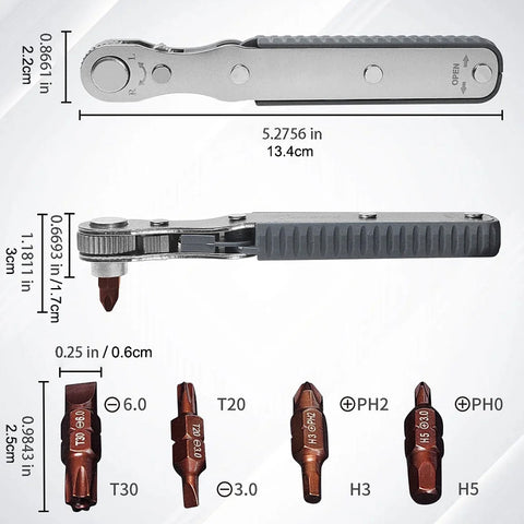 👍【 Tragbar und leicht zu verstauen 】 Die Seite des Ratschenschraubendrehergriffs kann geöffnet werden, und vier 1/4 "Bohrer werden auf der Innenseite des Griffs gespeichert. Der Ratschenschraubendreher ist mit dem Bohrer integriert, so dass er leicht zu tragen ist und der Bohrer nicht leicht zu verlieren ist.