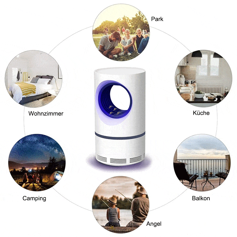 Die Mücken zusätzlich anzieht und gleichzeitig für Menschen und Haustiere völlig geräuschlos ist.
