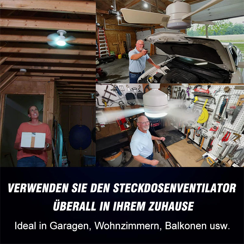 • Deckenventilatoren mit LED-Licht: Mit dem Steckdosenventilator können Sie eine Standardsteckdose auf zwei Arten nutzen. Der Socket Fan ist sowohl ein Deckenventilator als auch eine superhelle LED-Lampe in einem Gerät, sodass Sie Ihren Raum beleuchten und die Luft zirkulieren lassen können, ohne in zwei verschiedene Produkte investieren zu müssen.