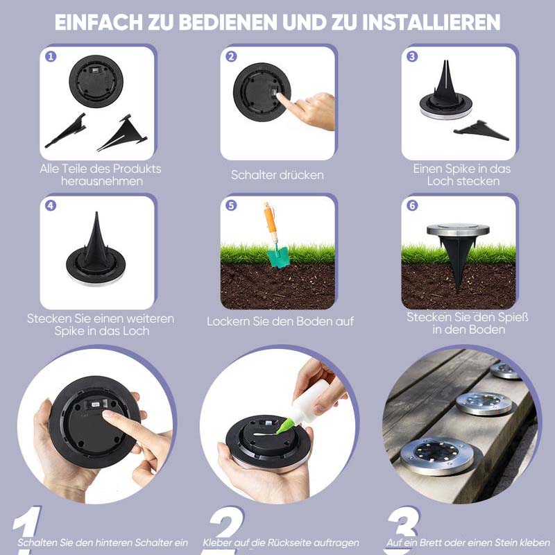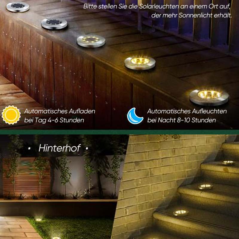 [EIGNUNG FÜR MEHRERE SZENEN]: Platzieren Sie diese Solar-Scheibenleuchten einfach in Ihrem Rasen, Hof, Terrasse, Garten, Blumenbeete oder am Straßenrand, und es wird nicht lange dauern, bis Ihre Freunde und Nachbarn kommen, um Ihre Bodenleuchten zu bewundern.