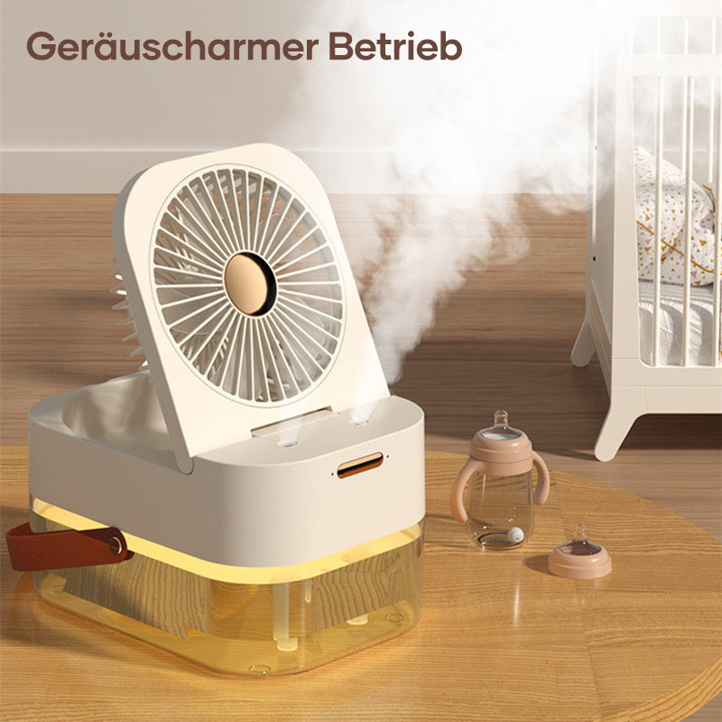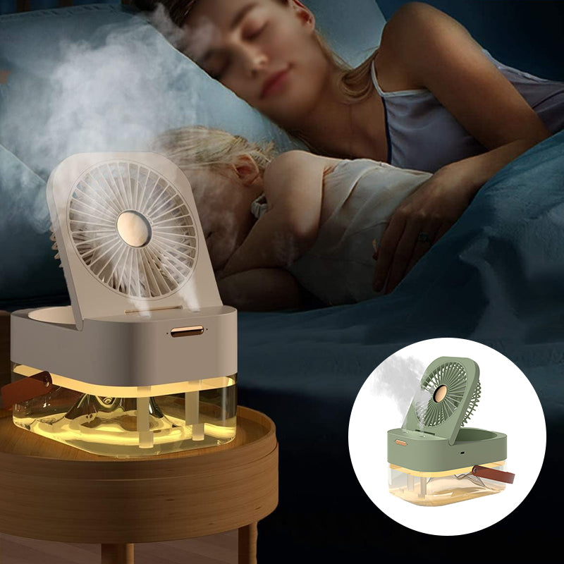 • Doppelte Feuchtigkeit: Dieser Ventilator verfügt über ein unabhängig gesteuertes Design mit zwei Sprühöffnungen. Sie können es je nach Wetter und Umgebungsfeuchtigkeit anpassen, sodass Sie eine angenehme Luftfeuchtigkeit genießen können.