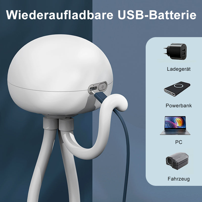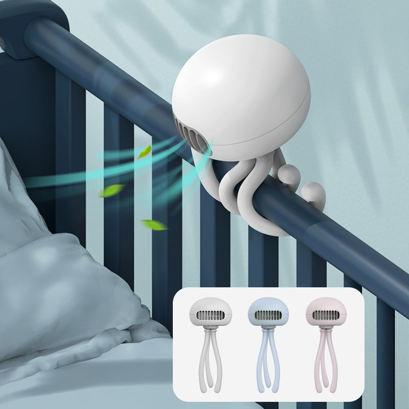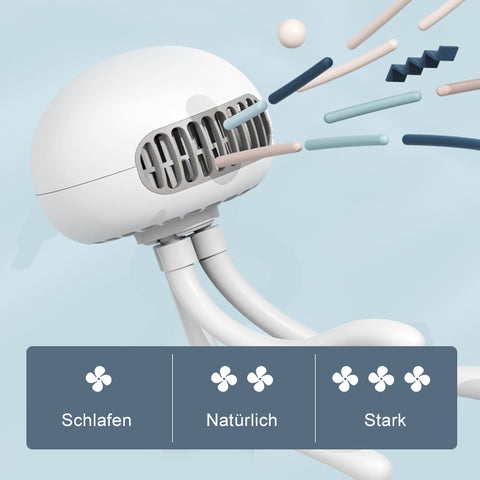• 【Neu gestalteter Lüfter】 Der deformierte kleine Quallenlüfter kann Ihnen jederzeit und überall ein cooles Gefühl vermitteln. Es kann auf dem Schreibtisch stehen, kann jederzeit und überall in der Hand getragen und um den Ständer gewickelt und aufgehängt werden. Einstellbare hohe, mittlere und niedrige Windgeschwindigkeit. Der erste Gang ist Schlafwind, der zweite Gang ist natürlicher Wind und der dritte Gang ist starker Wind.