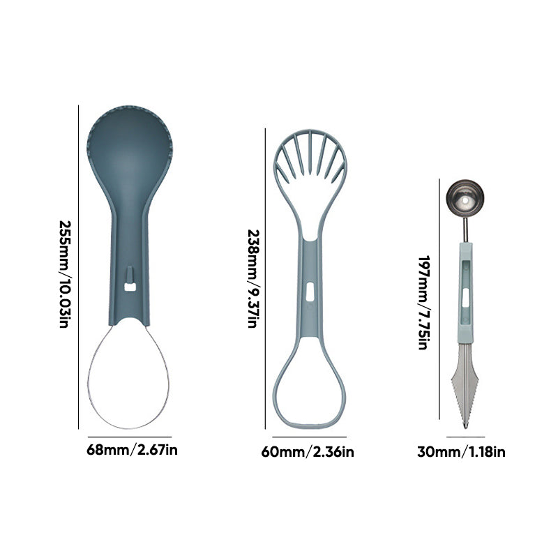 【3 In 1 Multifunktionales Obstwerkzeug】Das Obstwerkzeug ist in einem Stück entworfen und kann leicht in 3 Obstlöffelwerkzeuge aufgeteilt werden. Obstlöffel Küchenwerkzeug Set ist geeignet für Wassermelone, Melone, Drachenfrucht, Kiwi, etc.