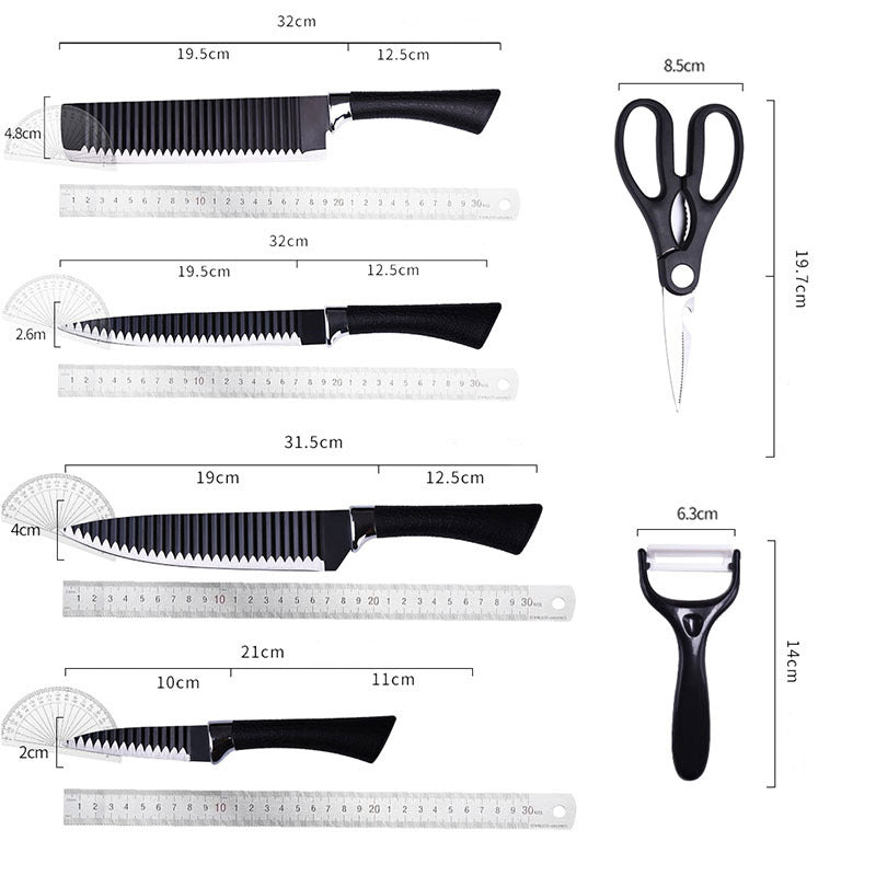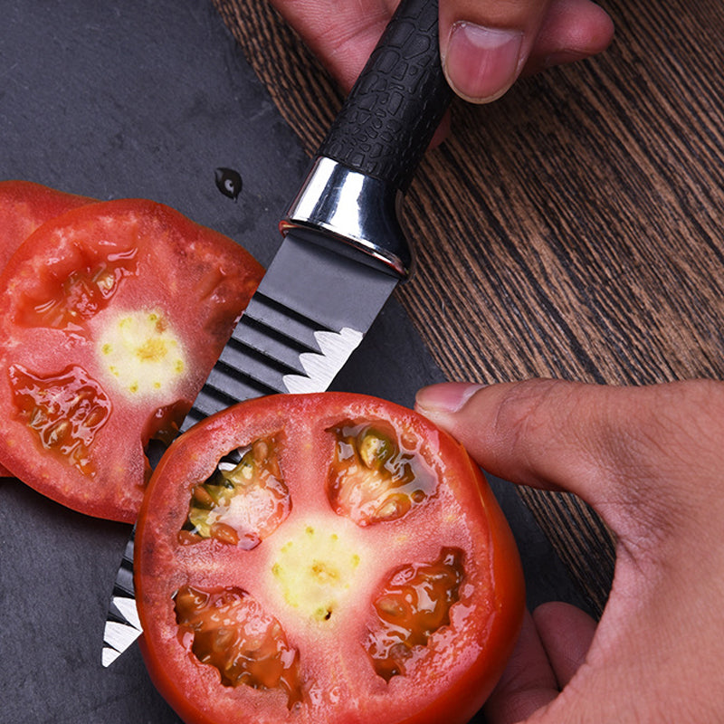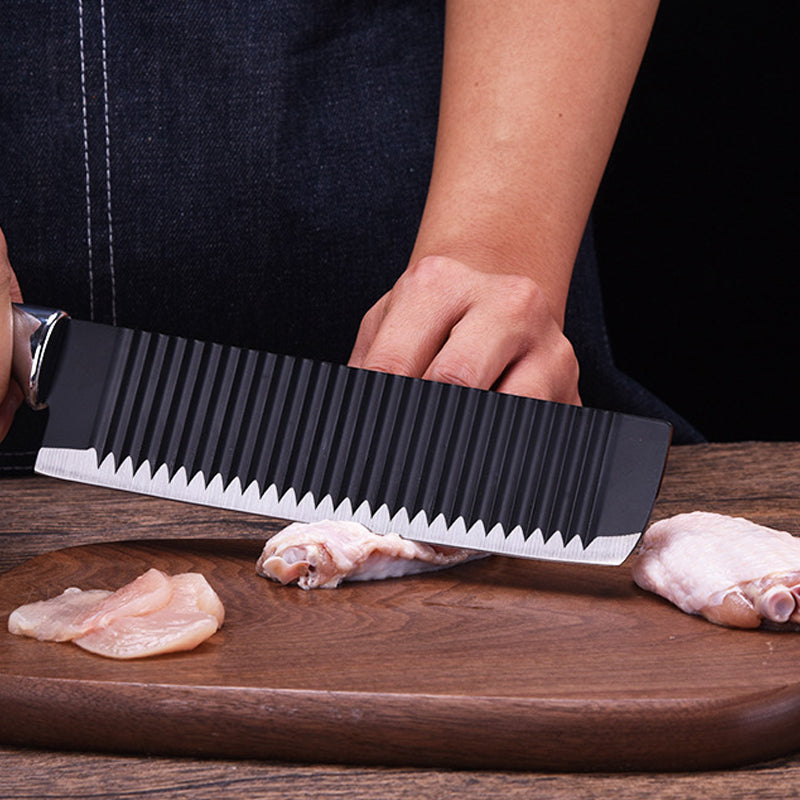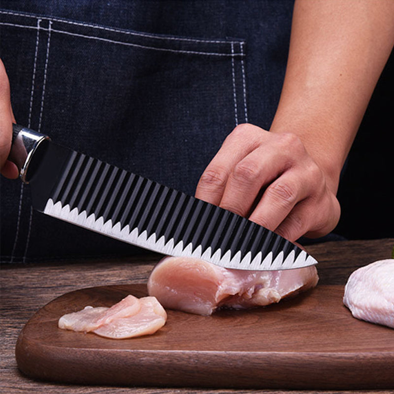 🔪Das wellenförmige Design der Messeroberfläche eignet sich sehr gut zum präzisen Schneiden und das Fleisch und Gemüse kleben nicht an der Messeroberfläche.