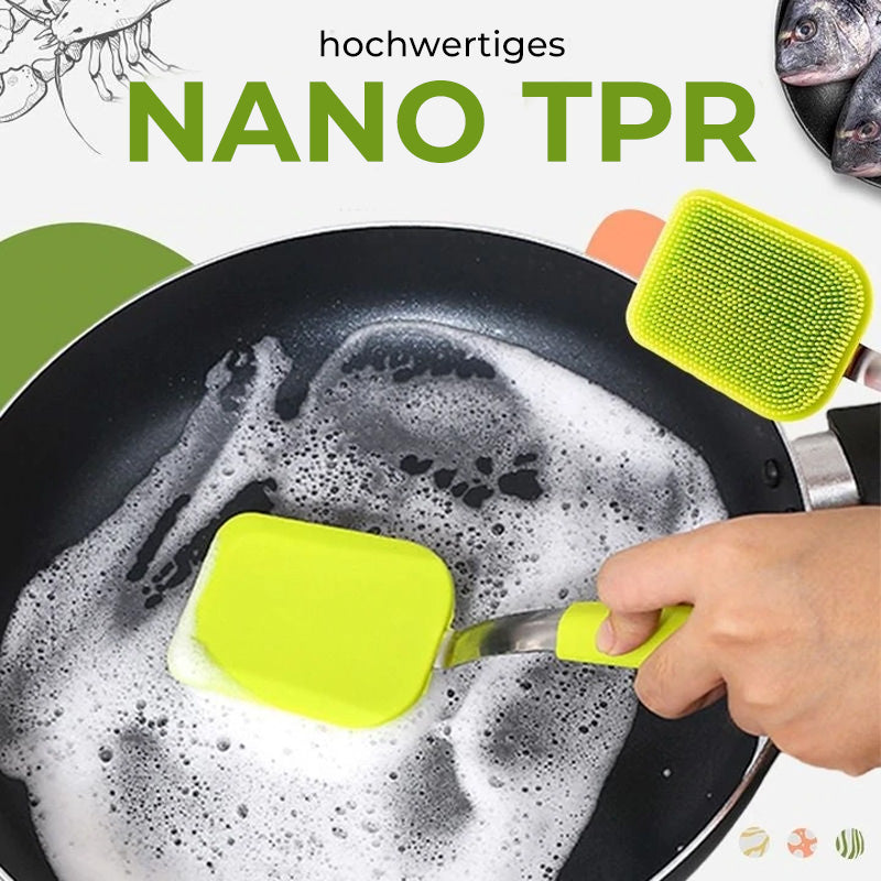 Die weichen Silikonborsten sind umweltfreundlich und hinterlassen keine schädlichen Rückstände auf dem Geschirr. Es kratzt nicht, nimmt Rückstände auf, hat einen unangenehmen Geruch und sammelt Bakterien an.
