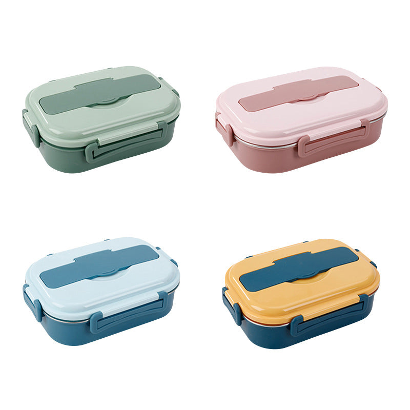 Der Deckel der Lunchbox hat einen Dichtungsstreifen und vier Druckknöpfe rundum, die die Temperatur der Mahlzeit verlängern können und nicht sofort kalt werden. Das versiegelte Design reduziert das Eindringen von Luft und kann die Lebensmittel besser konservieren. Und die Druckknöpfe halten die Brotdose fest und lassen die Mahlzeit nicht nach draußen verschütten, wenn es holprig ist.