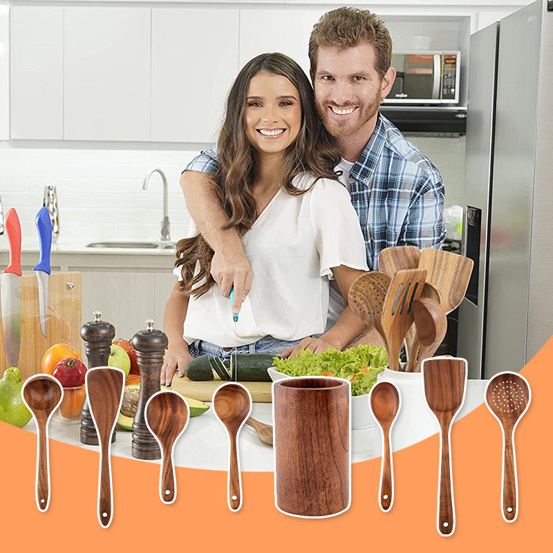 • ✔️AUS NATÜRLICHEM TEAKHOLZ HERGESTELLT – Holzutensilien geben keine Chemikalien ab, damit Sie beruhigt sein können.