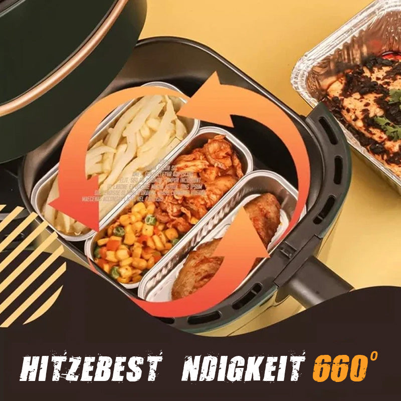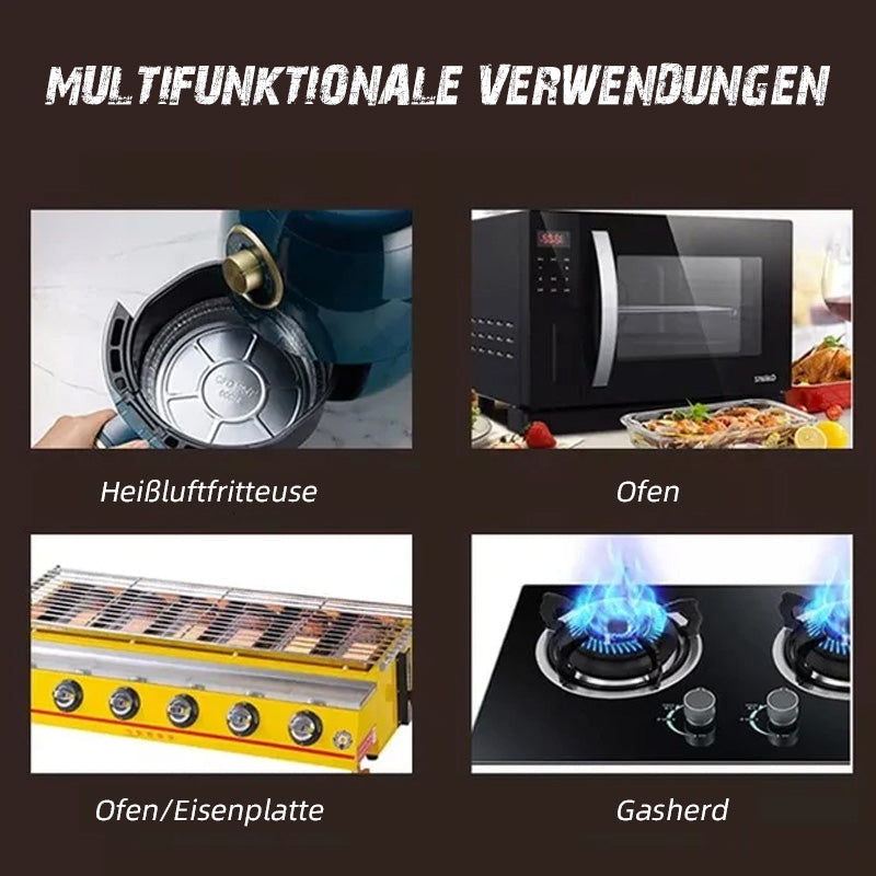 Hergestellt aus haltbarer Aluminiumfolie in Lebensmittelqualität, sicher, hygienisch und gesund. Es kann in Hochtemperaturumgebungen bis zu 660 °C eingesetzt werden.