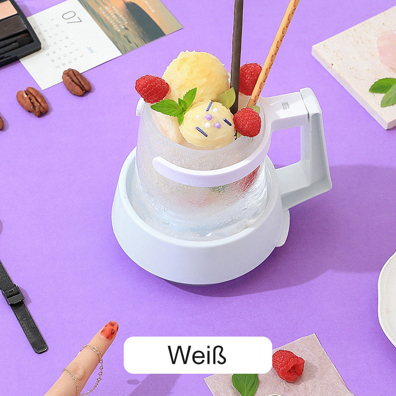 Das Eisbecher- Set beinhaltet eine Eisbecherform und einen Becherhalter. Der Griff ist bequem und leicht zu greifen, schützt Ihre Hände vor dem Eis. Der Getränkehalter dient zum Aufbewahren des geschmolzenen Wassers, ohne dass der Eisbecher verschüttet wird.