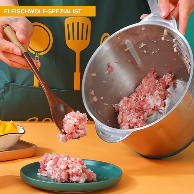 MULTIFUNKTIONALER PROZESSOR: Die Maschine ist mehr als nur ein Fleischwolf. Sie kann zum Zerkleinern von Fleisch, Fisch, Gemüse, Nüssen, Früchten oder zum Zubereiten von Salat, Guacamole und Babynahrung usw. verwendet werden.