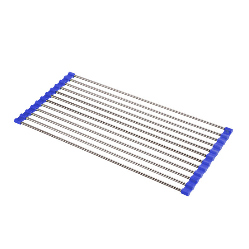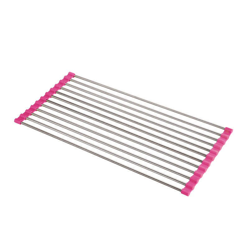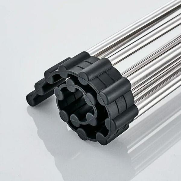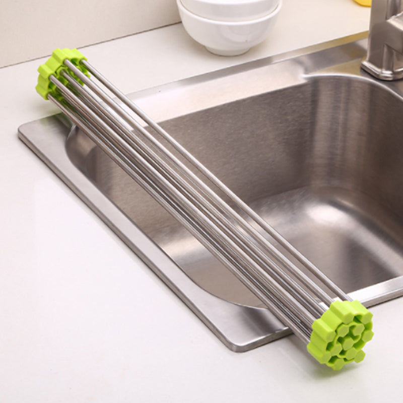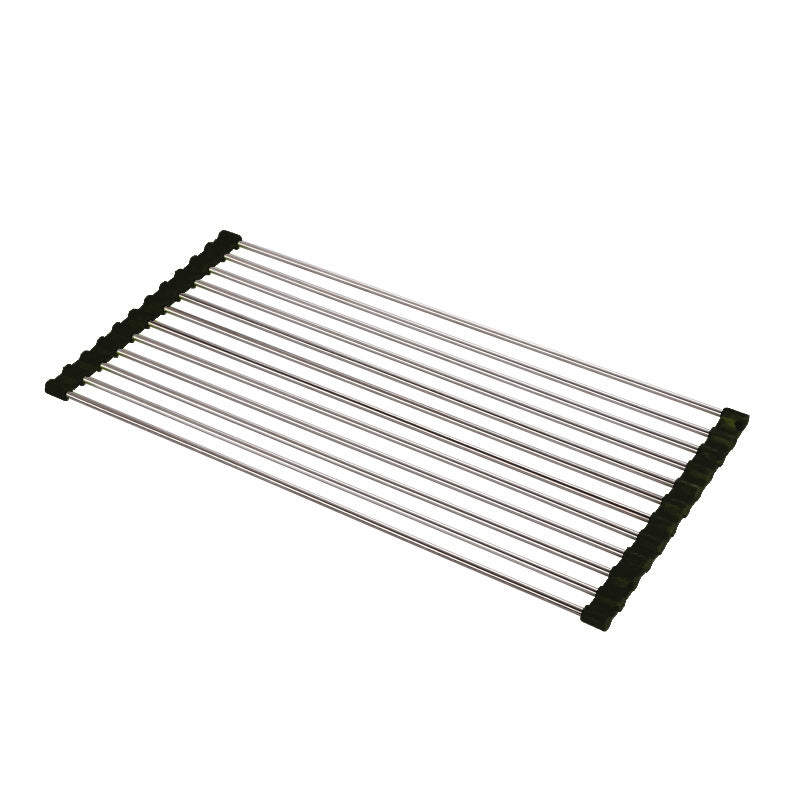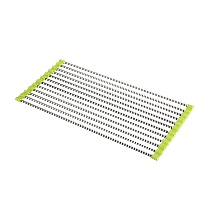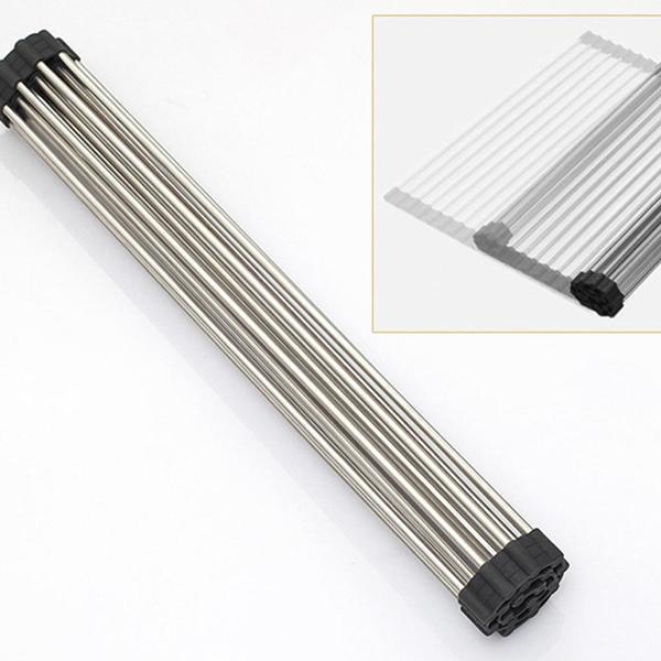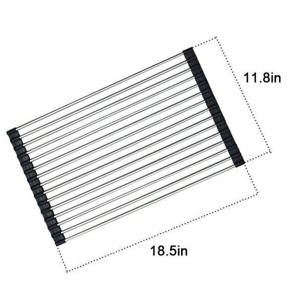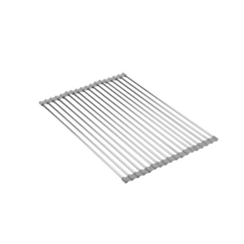 Dieses Faltbare Edelstahl Spüle Trockengestell ist ein platzsparendes Küchen-Muss aus silikonbeschichtetem Stahl, das auch als Wasch- und Auftauschation für Zutaten dient.