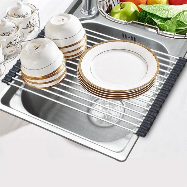 Multifunktional: Sie rollen das Gestell über einer offenen Spüle ab, um das Geschirr gut zu trocknen. Es kann auch als zusätzlichen Untersatz für Gemüse und Obst.
