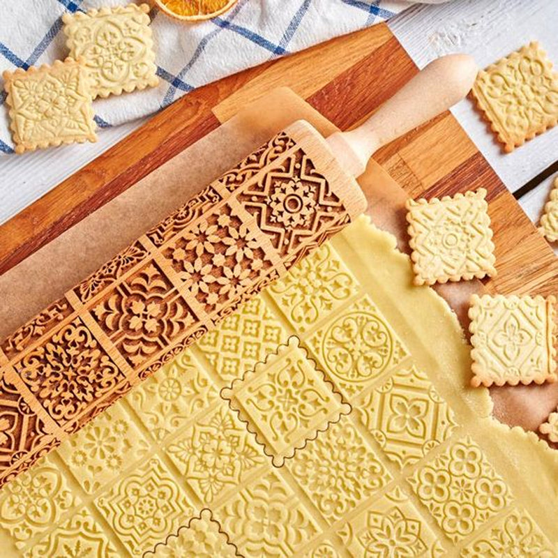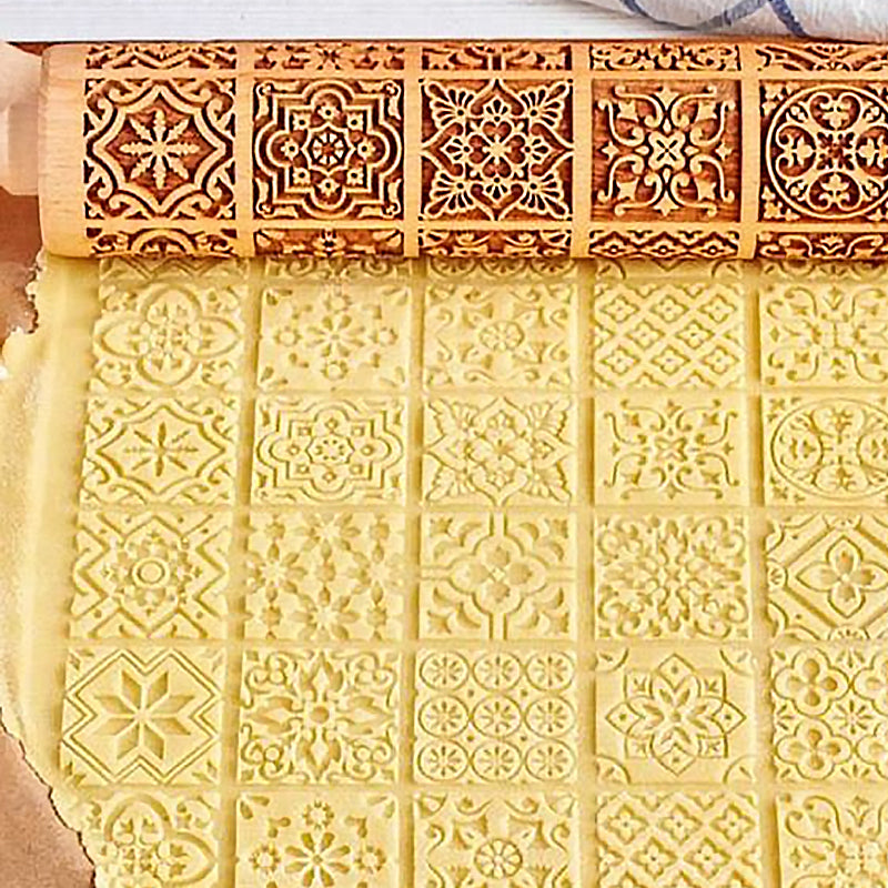 • Paket: Geprägtes Nudelholz aus Holz*1